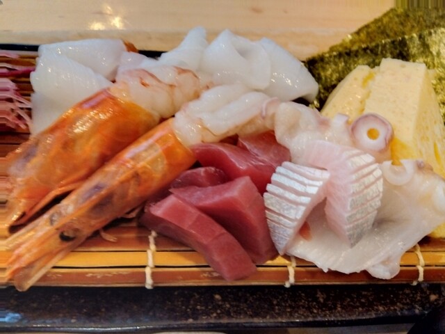 でっかい生海老は、まぁ見た目重視でしょうが、白身(多分マダイ)とタコは、かなり美味かったです。