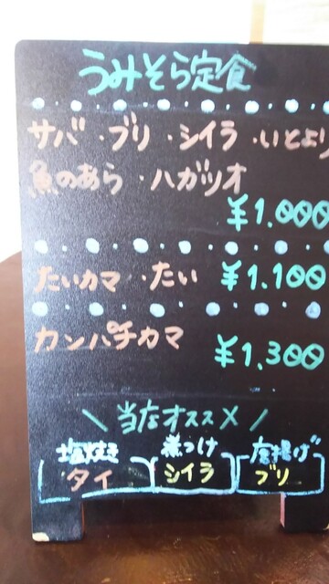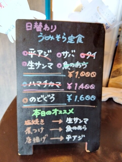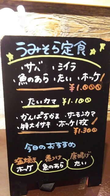 何か軽く食べようと思っても、こちらの名物「うみそら定食」は、ボリューム満点な魚料理がウリ、さりとて「チキン南蛮定食」なんか注文した日にゃ、爆死は確実。(笑)Ψ( ̄∇ ̄)Ψ