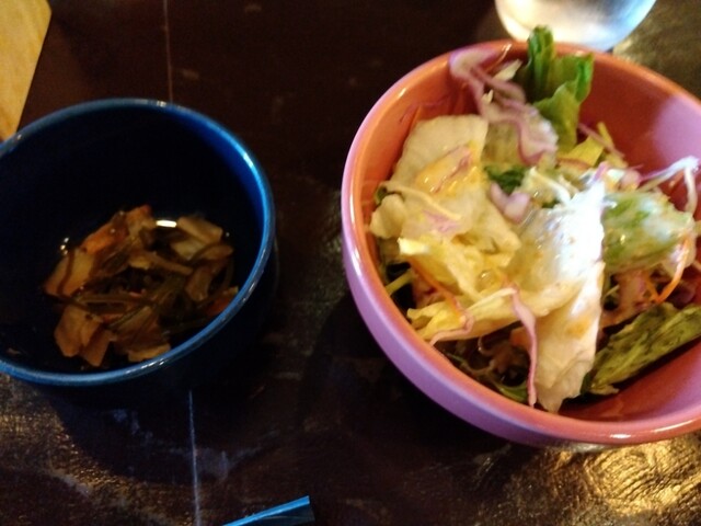 いつものサラダと小鉢(ポテトサラダ)に続いて、定食とメインも提供されます。