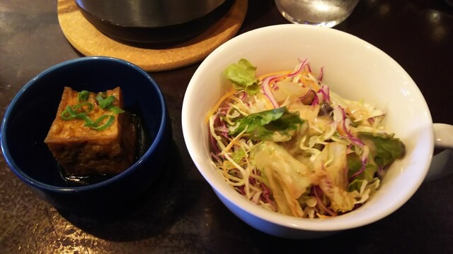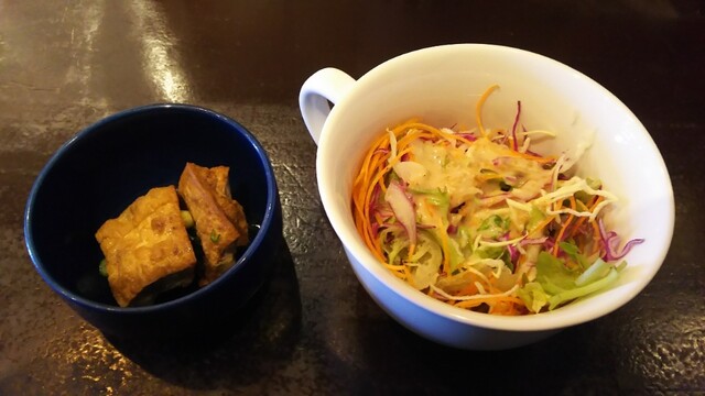 サラダと小鉢(厚揚げの煮物)