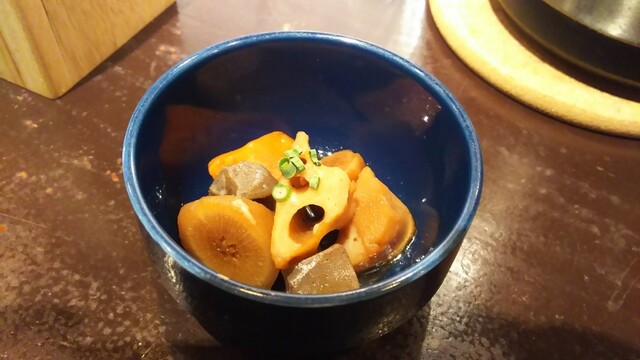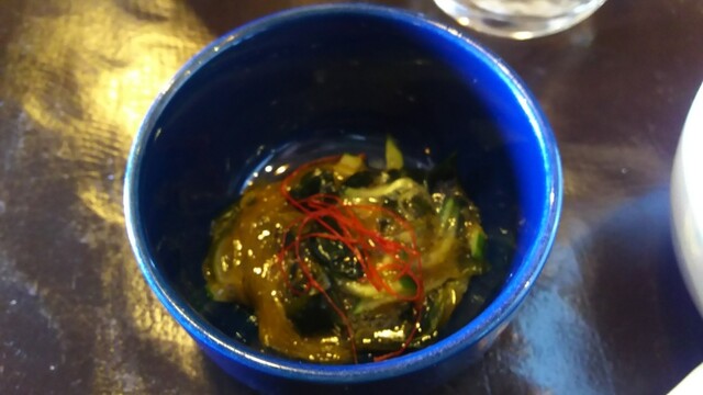 いつものように、サラダと小鉢を食べていると、お姉さんが何やら前菜的な一皿を出してくれました。