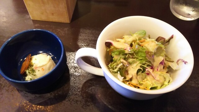 サラダと小鉢が先に出ます。