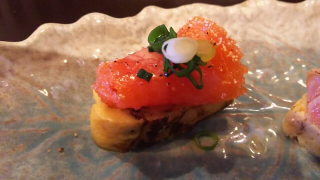 出汁巻玉子の炙りマグロのせ