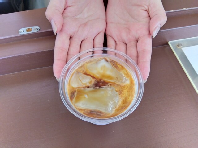 一杯毎に丁寧にハンドドリップされるコーヒーは、冷たくても香り立つ優れもの、こんな価格で飲ませてもらい心苦しいくらいです。(*^_^*)