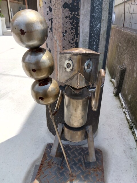 お団子を受け取って、残りも飲み干したコーヒーの紙コップを嬢ちゃんに渡して、次に行きます。