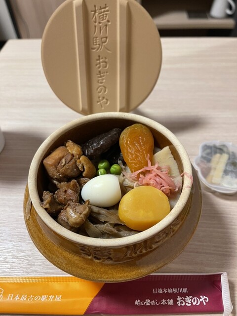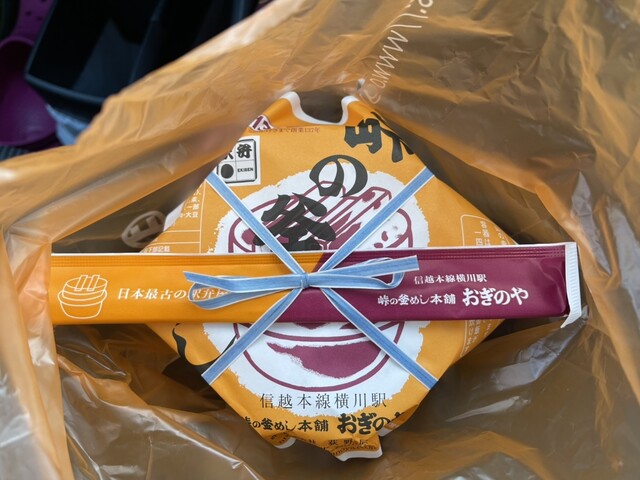 入口辺りにお土産コーナーがあり、おぎのやさんが丁度釜飯を搬入していたところで、宿での夕飯にしたく購入。