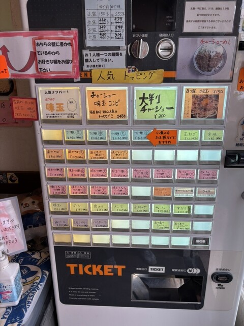 券売機でつけ麺中盛1060円、特別トッピングの生卵100円、炙りチーズと刻み海苔200円を購入。