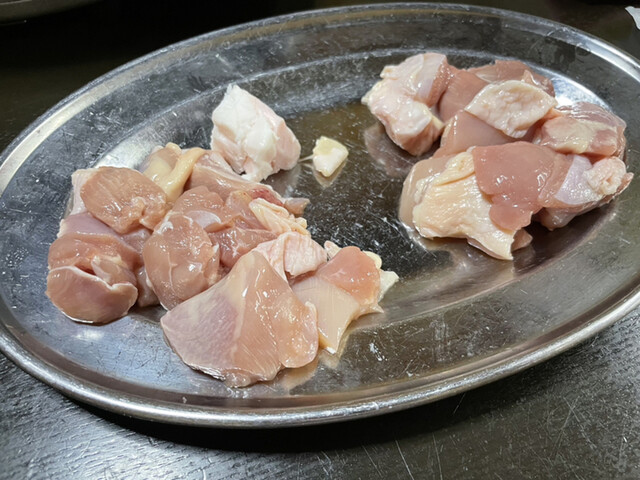 今朝しめた新鮮な若どりを網で焼いていただきます。タレ無しでも美味しい!しっかり焼いて皮が黒くなったところで引き上げます。