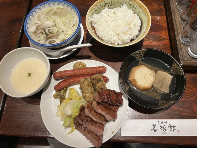 「牛たん、ソーセージ、つくねの盛り合わせ」と