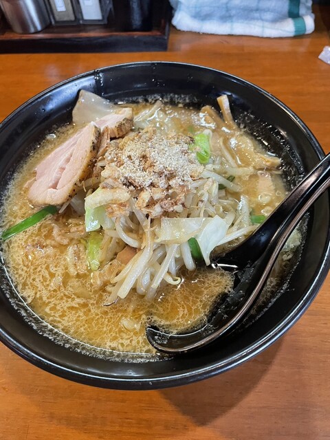 この店は純連系の味噌ラーメンが人気ですが、私は20年以上この店に2〜3ヶ月に1回くらいの頻度で通っていて、イチオシは醤油(写真左)ラーメンです。見た目ではわからないかもしれませんが、山椒と生姜をチョッピリ加えて?スープと一緒に野菜を炒める県内では唯一無二のラーメンだと思うので、興味のある方は是非食べてみてください。