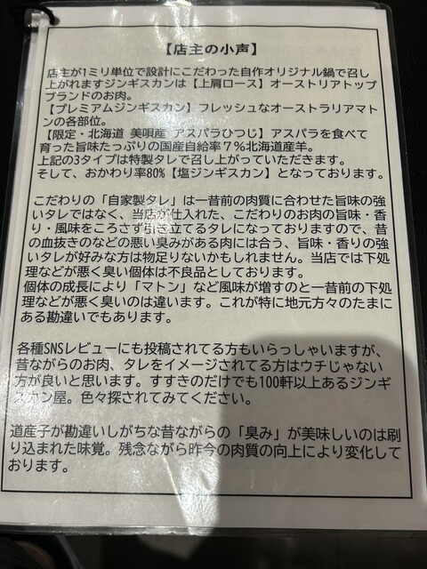 ジンギスカンは驚くほどおいしくて、ビックリしました!!子連れで行ったのですが、おいしいお肉しか食べない子どももたくさん食べていて本当においしいのだなと思いました。