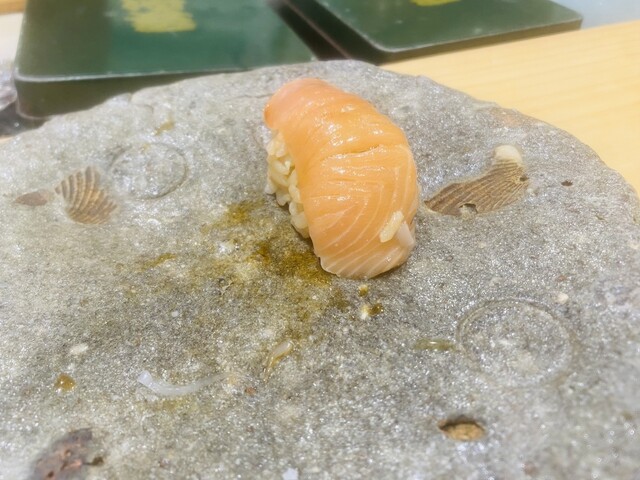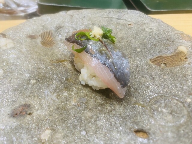 4.鯵・・・定番ですが上に生姜とネギが乗ってます。ねっとりとして美味しい。