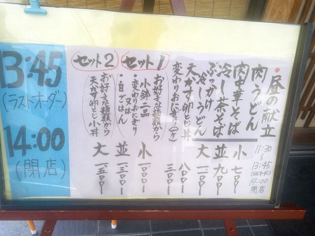 予定通り「肉中華セット(肉中華そば、変りおにぎり1個、小鉢2品)」を注文、麺類は「うどんか中華そば」から選べて具材は牛肉の一択、麺の種類、量を選ぶだけです。