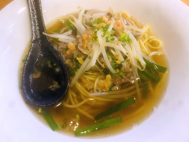 ラーメンの具材は牛肉、笹がきネギ、モヤシで私ラーメンに入ってるモヤシ大好きなのでGood!