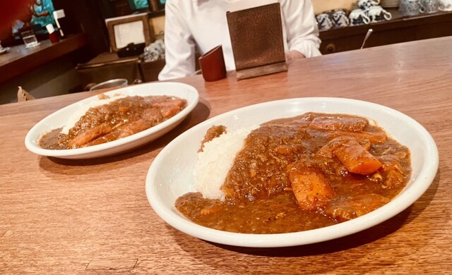 カレーはよく煮込まれた感じの優しい辛さで、大きめのニンジンが沢山入っていました。