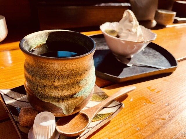 既に満腹でしたが、デザートも魅力的なので、追加注文。甘味の抑えたたっぷりのあんこと柔らかなお餅の添えられたクリームぜんざいとコーヒーで終了。