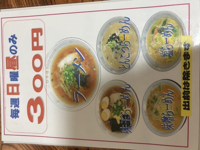 ラーメン300円です。(日曜昼間限定)