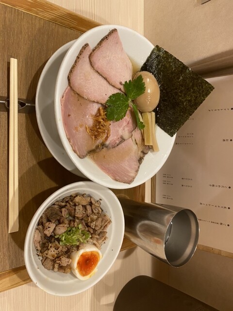 黄金貝ラーメンの特選と、炙りチャーシュー丼