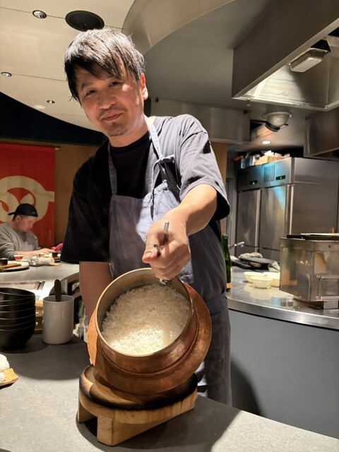 めひかりの焼き物から始まり、ホタルイカ、長谷川のマッシュルーム、山菜のウニがけ、焼き物のからすみかけ、前田豚の豚汁、貝と肝、卵かけご飯、プリンアイス、お土産と、全てマクロビ系で美味。上半期で出会った最高のレストランの一つです。