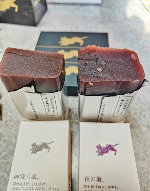 「阿波の風」は和三盆糖入りで、「夜の梅」に比べ優しい穏やかな甘さ。