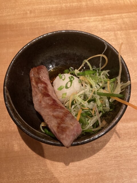 香味野菜とおろしを大量にのせて食べるものや、卵黄につけるもの、ネギとガーリックチップを巻くものなど飽きずに楽しめます。
