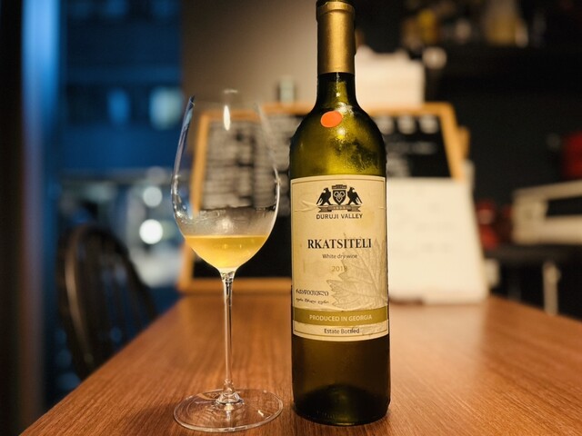 キンズマラウリワイナリーはジョージアにあるワイナリーでルカツィテリの香りは柑橘とりんごと洋梨がもったり重たくて味わいはドライで穏やかな果実と酸がしっかりと厚みのあるワインだなあなあんてオモイマシタ