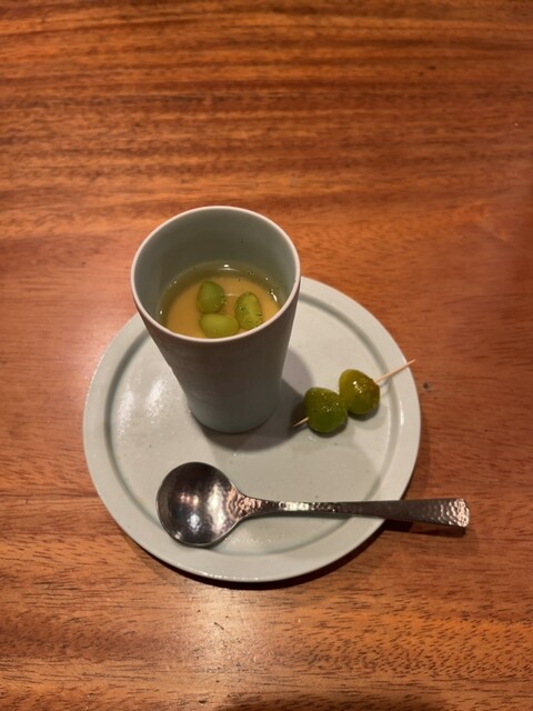 まず鳥三品、レバーパテで始まり、後半の天草大王の焼き物とご飯以外は、その時期に美味しいと中村さんが思うものを使った料理が続いていく。