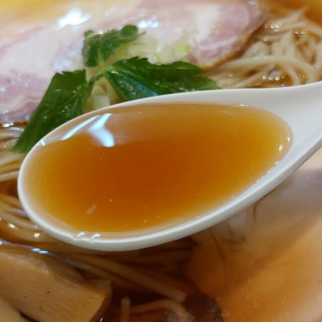 定番の醤油は、地鶏と水のみのだしに、生揚げ醤油のかえしを合わせておられます。鶏の旨味と醤油の香りと旨味をしっかり感じる美味しいスープです。