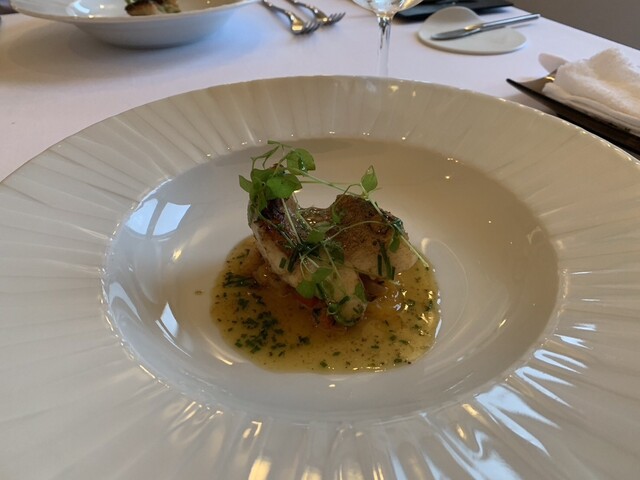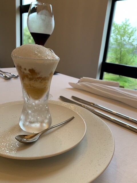 とても繊細な前菜 層になってて魚介のジュレや人参ムース等。詳しくは忘れ…