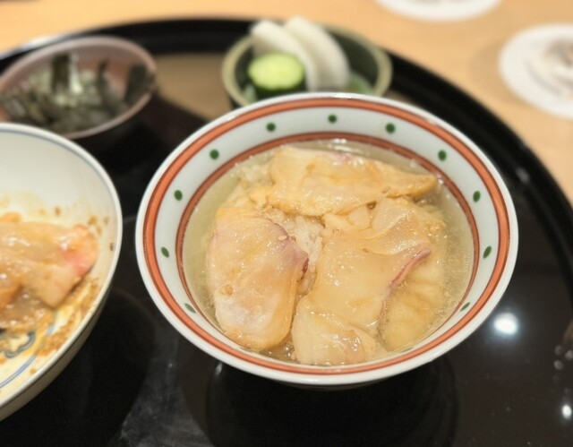 新潟のコシヒカリの原種のお米を使っている農家さんのお米だとか。炊き立てのご飯はお焦げもあり、鯛茶漬けとの相性も抜群でした。