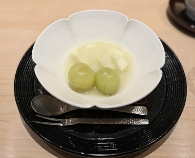 トラ河豚さし あん肝、氷見の迷いガツオのお刺身と松坂牛のローストビーフでした。魚もお肉も両方飛び抜けて美味しかった。素材が良いのはもちろんだけど、火入れや切り付け等、プロの仕事あって活かされている感じでした。食べてなくなってしまうのが名残惜しかったです。