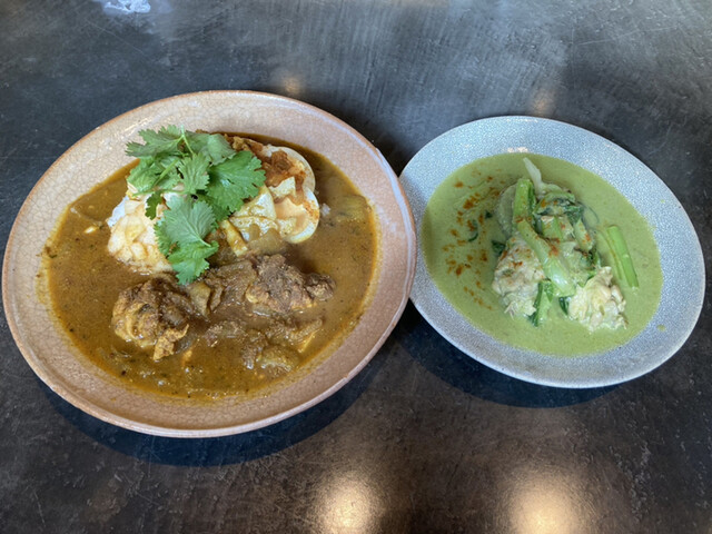 左のカレーは、今回の内容調整によって仲間入りしたダルカレー。 ふわふわの大根が優しくて新たに出現したオアシスのよう。