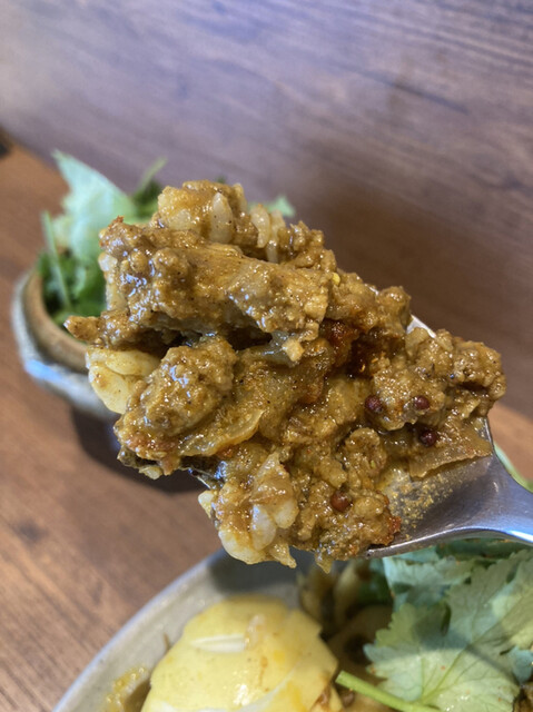 ひと口ごとに味の変化や食感の変化が感じられる肉肉しいキーマカレーになってます。