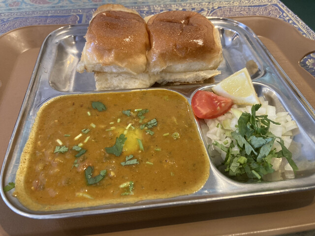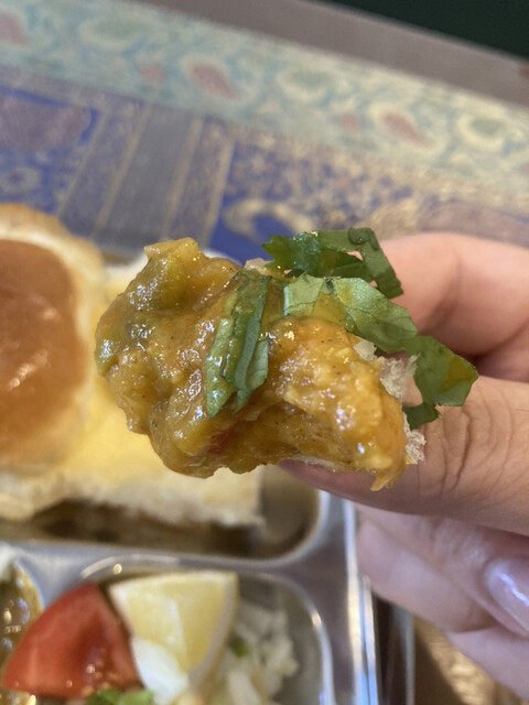 ムンバイパンの表面と中に染みこんだバターがまたイイ働きをするんだわ。