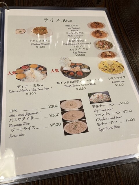ビリヤニもミールスもレモンライスもインディアンチャイニーズもあります。 ちなみに伝説のバンブービリヤニも何やら構想はあるようで。