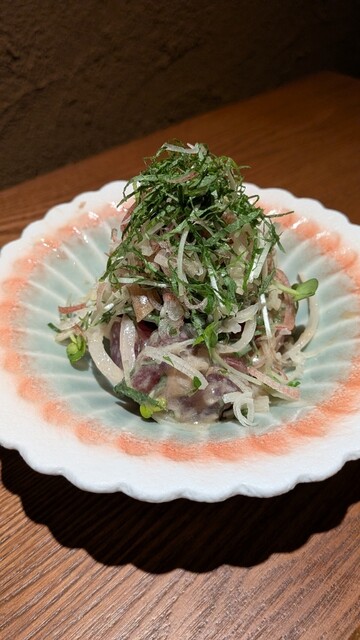 三栄通り商店街から少し入った路地の地下一階にある三茶ユキツバキさんに初訪問っ。先ずはビールでお疲れ生〜。お通しのカボチャのムースからめちゃ美味しいやつ。前菜的に名物ねぎタン刺しをオーダー。てかこれタン×ねぎ×卵黄でめちゃヤバいやつ。めちゃ美味しい〜。続けて鮭クリームコロッケ。新潟の鮭と黒舞茸が入ったクリーミーなコロッケもめちゃウマ。ユキツバキオリジナルドリンクを挟み新潟の日本酒をカツオと香味野菜の越後味噌ぱつちょに合わせる。これ最高の組み合わせ。そしてお目当てのにいがた和牛のすき焼き風。これには新潟産赤ワインを合わせます。絶妙なさしが入ったにいがた和牛と卵黄とわさび菜。これもね〜卵黄に絡めてわさび菜で巻いて食べたら反則級に美味しい。ホッペタ落ちました。最後はメインディッシュの特上にいがた和牛と卵黄黒舞茸のわっぱ飯。何なん?この贅沢にのったにいがた和牛のステーキ。もちろんこれにも卵黄タレ。そして黒舞茸。あ〜これ食べたら嫌な事も忘れますね~。またまたホッペタ落ちました。これでもかのにいがた和牛と卵黄の共演に舌鼓っ。新潟のお酒にも大満足です。ご馳走様でした。