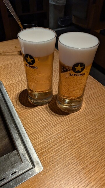 ビーフキッチン中目黒本店に初訪問。9000円のプレミアムコースと飲み放題をオーダー。先ずはビールで乾杯しナムル4種盛りとキムチが到着。ビールが進みます。続けてサーロインの炙りユッケ。何なん?このユッケ美味し過ぎでしょう〜。続く焼肉に期待大。そして塩焼肉3種の厳選タン、特選ハラミ、和牛シャトーブリアン。タンウマっ、ハラミウマっ、シャトーブリアン箸でほぐれるっ。この塩焼肉3種も最高過ぎでしょう〜。ヤンバイな〜と思ったのも束の間、みすじの焼きしゃぶ。鬼おろしと合わせたみすじも絶好調に美味しい。サラダを挟み牛頬肉のシチュー。和風な味付けなビーフシチューにトロける頬肉。これランチメニューに有ればこれ食べに行きたいな〜。そして芯々ととも三角の厳選タレ2種。はぁ~これもめちゃウマ。焼肉ラストは大判和牛ザブトンのすき焼きセット。はぁ~はぁ~ホッペタ落ちちゃいますね〜。〆は和牛すじカレーとコムタンクッパをオーダー。〆には丁度よいサイズ感。デザートにはプリンと柚子シャーベットでさっぱり美味しくfinish。リピート必至なこのプレミアムコース。めちゃめちゃお勧めです。ご馳走様でした〜。