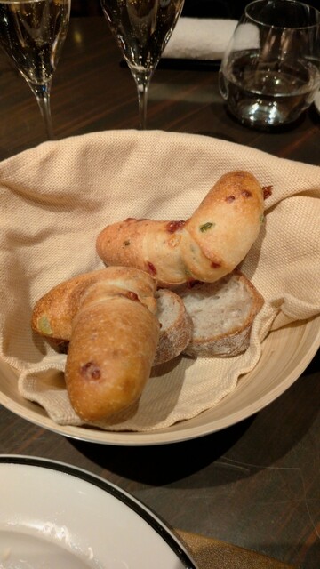 お昼のランチを目当てにヒルトン東京のメトロポリタングリルに訪問。入った瞬間から豪華な雰囲気に包まれます。先ずはルイナールで乾杯。これ美味しすぎるでしょ〜。少し落ち着いたところでサラダバーに。色とりどりのフレッシュな野菜に各種チーズや生ハムやサラミにスモークサーモンと種類もめちゃ豊富。サラダバーを楽しんでいる途中にパラペーニョブレットとカンパーニュがサーブ。珍しいパラペーニョブレットは少し辛めでこれは初体験の味わい。続けてメインディッシュのサーロインのステーキフリットとザ・メトロポリタングリルバーガーが到着。ステーキはミディアムレアな仕上がりでめちゃ肉厚でジューシー。ベアルネーズソースとも相性抜群です。これは贅沢な気持ちになれる一皿。シェアしたハンバーガーの和牛パテもこれまためちゃ肉厚ジューシー。久し振りに食べた豪華なハンバーガーに舌鼓っ。デザートにはピスタチオラヴァケーキとヴァローナマンジャリ64%チョコレートクリーム。どちらも此処でしか味わえない豪華なSweets。ホットコーヒーをゆったり味わいながらヒルトンのグリルランチを満喫。大満足てす。ご馳走様でした。