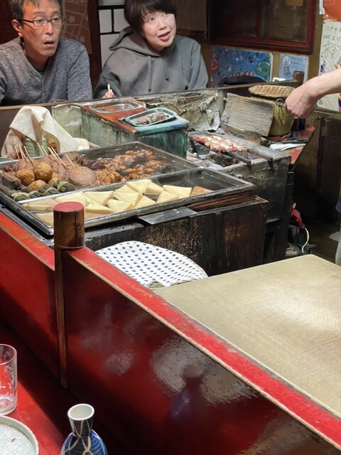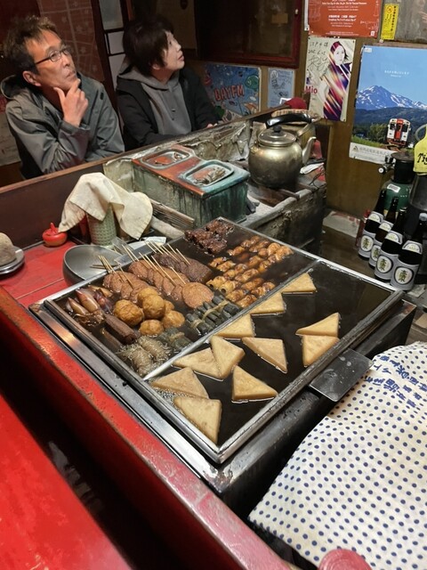 手持ちのメニュー表はなく、店の上に木の札でおでんと串がかかれているのを見てオーダーするスタイル