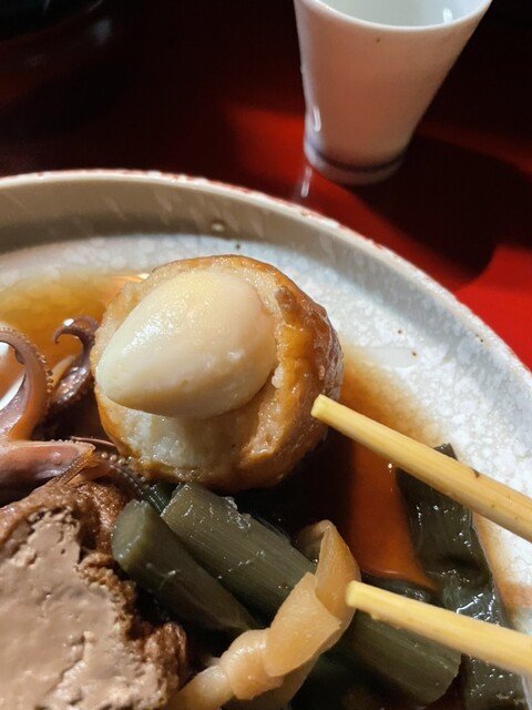 団子は外は練り物で中にうずらが入っていた。びっくり