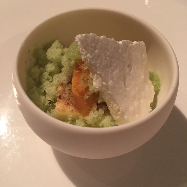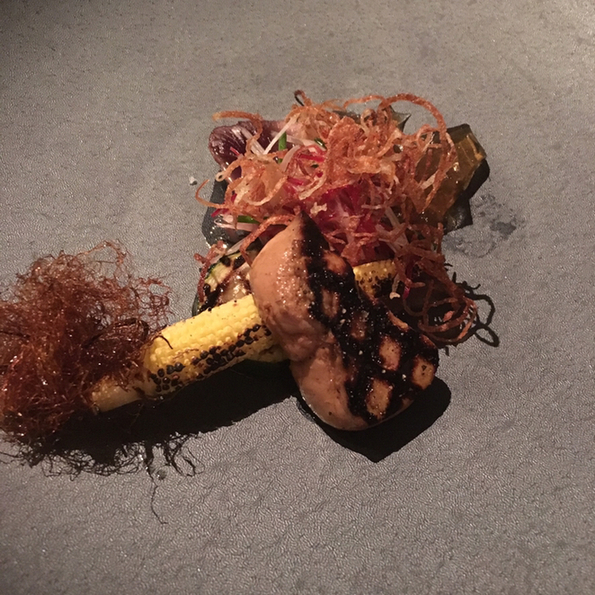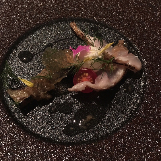 料理はフランス料理の食材と形を借りた。繊細な懐石料理だと思いました。素材の味を徹底的に活かしソースはあくまでサラリと料理の陰に隠れています。なので新鮮な食材そのものの味を堪能出来ます。鯛の焼き物に土佐酢のジュレが添えてありましたが、それを焼き目を付けたフォアグラにも絶妙に合うのは嬉しい反則?