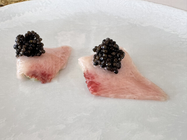 これをまるっとお口に入れると、ブリのすっきりとした旨み、シトロンキャビアの爽やかな酸味がまざり、そこに大根のフレッシュな食感が合わさって、超美味しい!