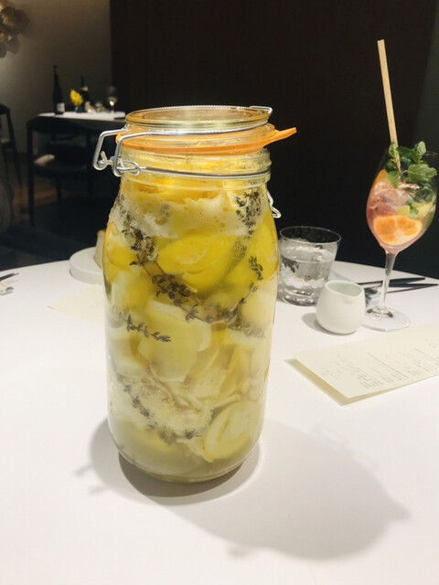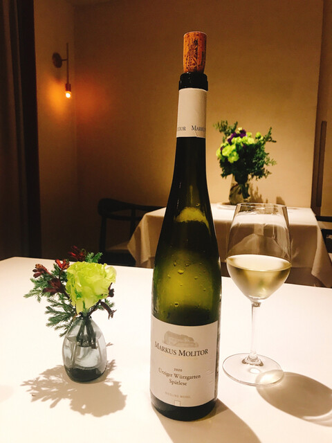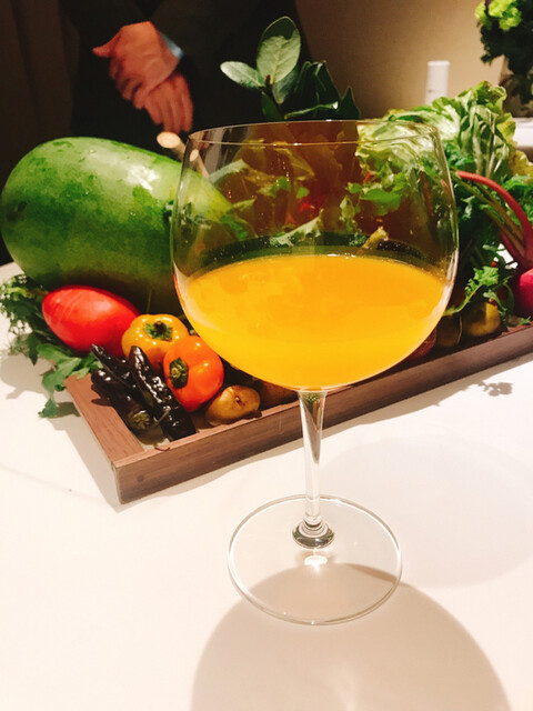 ドリンクは、グラスワインをお料理に合わせて、ソムリエさんにチョイスしてもらいましたが、どれも相性バッチリで、ソムリエさんの解説もとても楽しかったですキツネのラベルのオレンジワインが印象的で、キツネの意味なども教えてくれました。