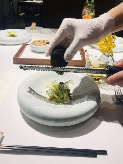 その上に神保シェフ自らイタリア・アルバの白トリュフをたっぷりとかけてくれました。