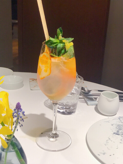 私も妻もドリンクは、ソムリエの関本さんにお任せ♪いつも素敵なワインやノンアルコールドリンクを出していただけます。