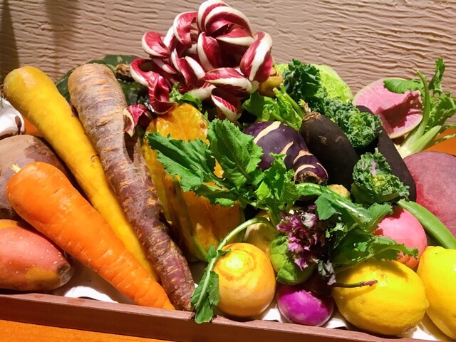 神保シェフのスペシャリテ、30種類以上のお野菜を使ったバーニャカウダ。