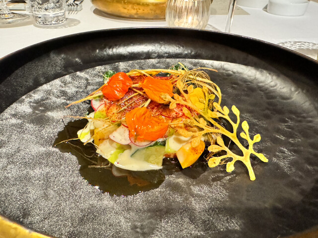 雲丹、発酵トマトをメインに、ブンタレッタというお野菜やアオリイカなども入っていて食感も素晴らしい。