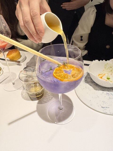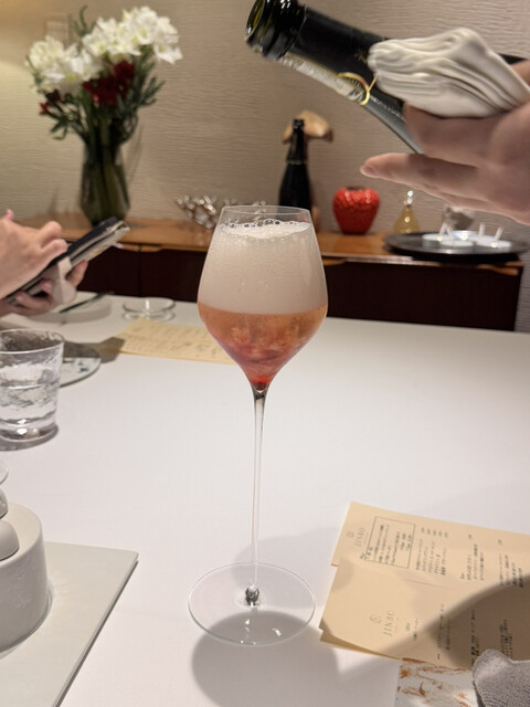 ドリンクは、基本的にソムリエの関本さんにお任せして、いろいろなワインを出していただきました。とても解説が詳しくて楽しいです!関本さんは、お酒だけでなく、お料理の方も詳しく解説してくれて、お食事を盛り上げてくれます。有り難うございます!!