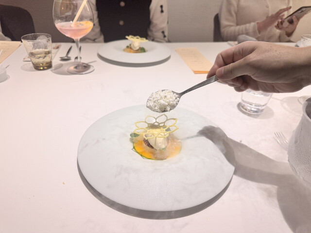 今回は、特に丸っとした白子が乗ったリゾットに白トリュフをたっぷりかけてくれたお料理が超絶美味しかった!