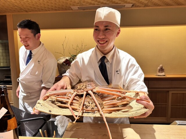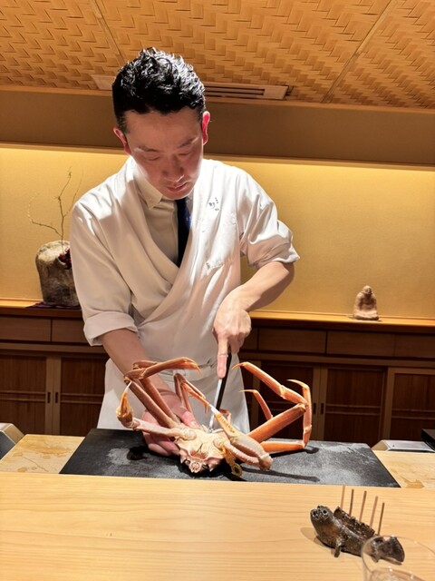 その生きた蟹を野口さんが、目の前で捌き始めました。